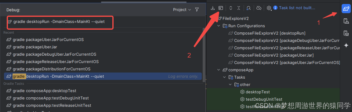 在桌面上运行,需要手动设置运行配置或执行gradle命令。