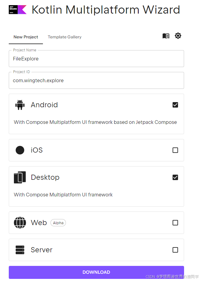 KMP 官方推荐使用多平台项目创建向导进行项目创建,KMP项目创建向导。